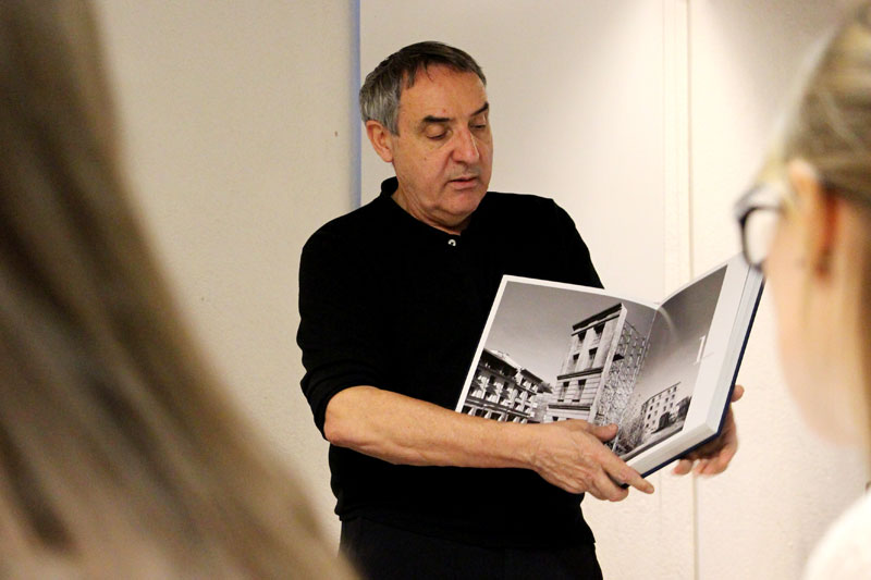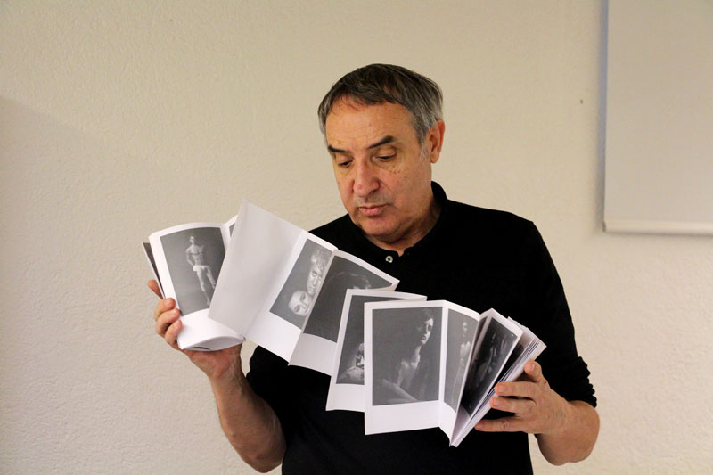 Durant la sessió va mostrar el seu treball, molt dirigit a moda i retrats d’actors i cineastes del panorama espanyol, va repassar la seva trajectòria des de la fotografia analògica, amb l’ús de polaroids com a sistema immediat de test de llum o composició dins l’espai, fins a la petita càmera digital que porta actualment sempre a sobre. Una bona oportunitat per a conèixer les interioritats d’una carrera fotogràfica espectacular, narrada en veu pròpia.