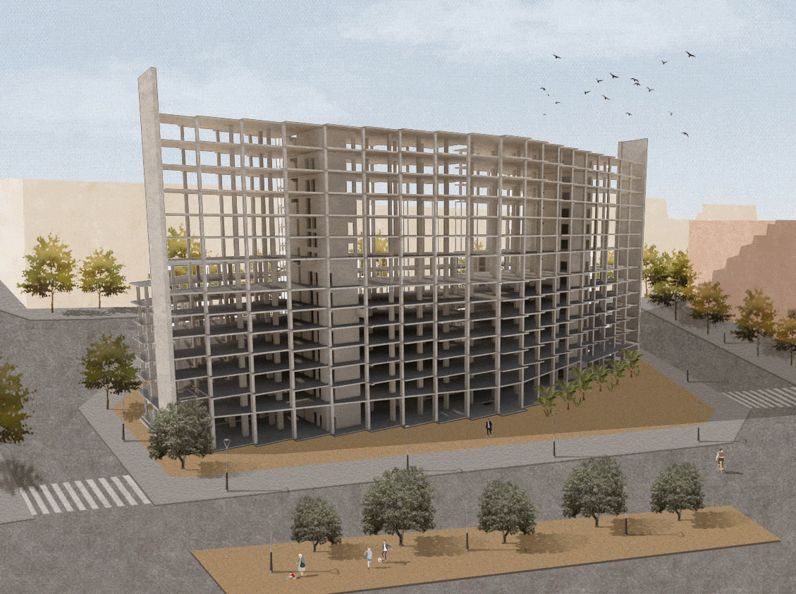 Proposem aprofitar la carcassa de l'Edifici Estel mitjançant la configuració d'un projecte sostenible i plurifuncional que singularitzi l'edifici i que incideixi a l'entorn per millorar la vida dels ciutadans i per renaturalitzar la ciutat. Estem convençuts que només el “desmanteniment” i la “descivilització” ens portarà a la veritable naturalització. La naturalesa es pot reconstruir en un terreny que no és seu? Serem capaços d'emetre nous nivells d'oxigen? Serem capaços de descivilitzar allò civilitzat?