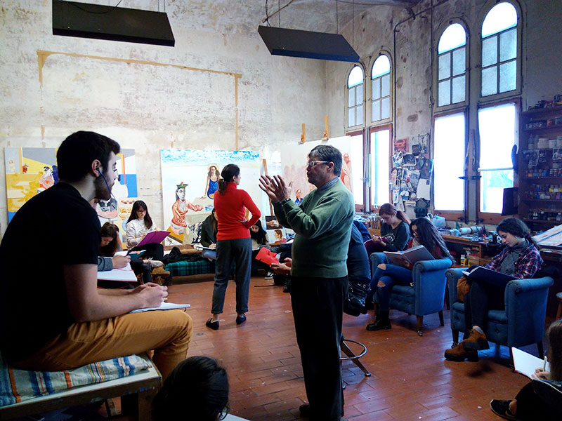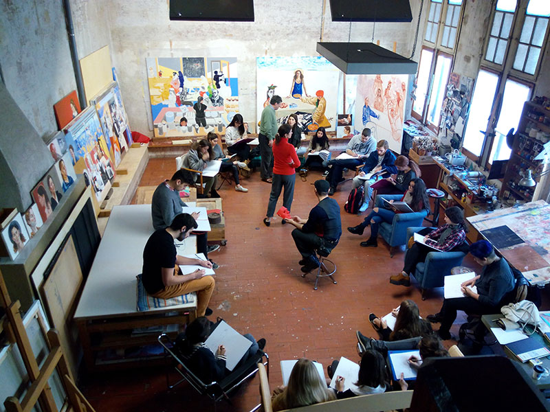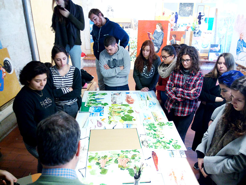 First year students of the Basic Drawing course, taught by Mar Saiz and within the Degree in Design visited Francesc Artigau's (artist and former professor at EINA) studio where they could make their drawings.