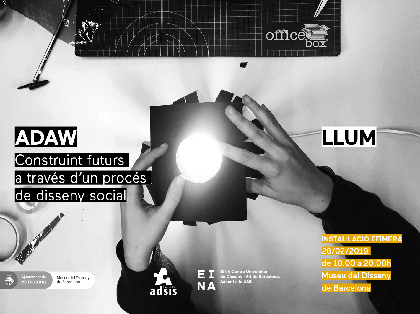 ADAW / LLUM is a temporary installation of 18 lamps that marks the culmination of a creation, education and design project resulting from the collaboration between EINA, the Adsis Foundation and the Design Museum. This is an initiative in which a group of 20 young Adsis Foundation users, students on Design Methodologies, led by Anna Majó, and the Education Service team at the Museum have explored, through practice, design as a tool for learning and for transforming the environment.