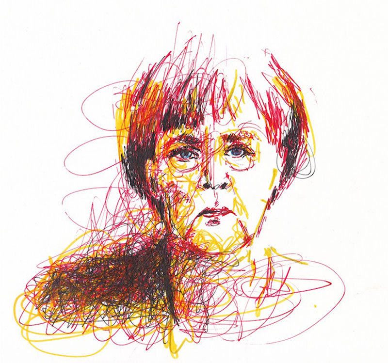 Claudio Molina, professor at EINA, has illustrated the article "Germany, the leader that did not want to be" in the magazine La Maleta de Portbou number 15, edition January/February 2016.
