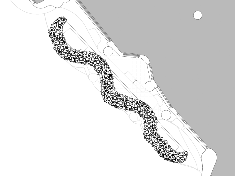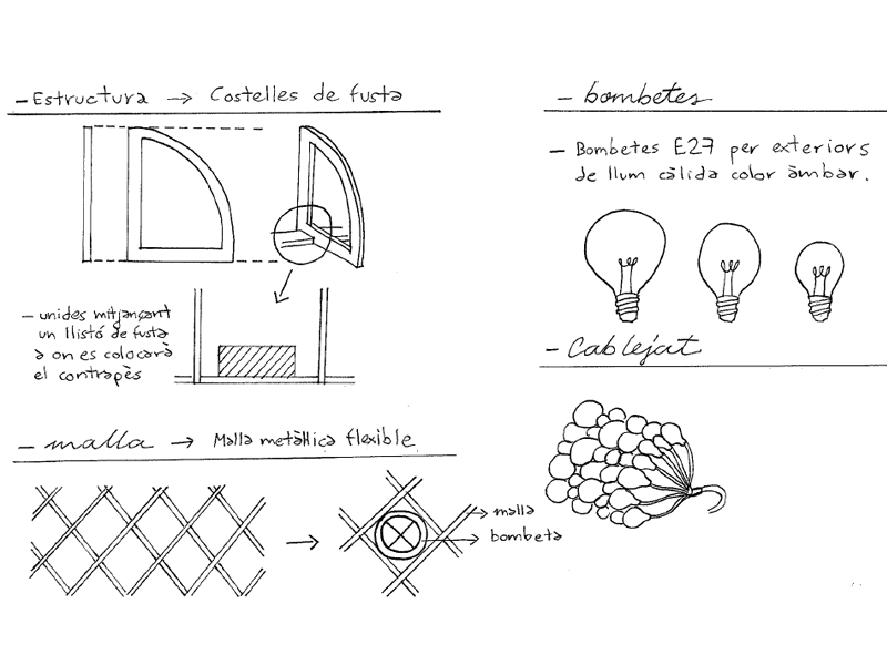 The proposal is an accumulation of light bulbs of different sizes placed on the first-floor balcony, on the façade. The idea is that a great and overwhelming mass of light can be seen from the street. Because of its simplicity and look, the traditional light bulb is the ideal element to create this 3D representation. In addition, the interspacing of different sizes of light bulbs adds volumetric contrast and reflects sunlight in different directions during the day.