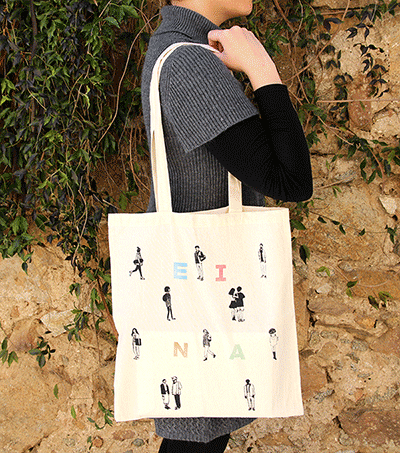 This year, EINA's bag has been designed by Adriana Cabeza, student of the fourth year, within the subject Stamping Techniques of the Degree in Design and taught by Enric Mas.