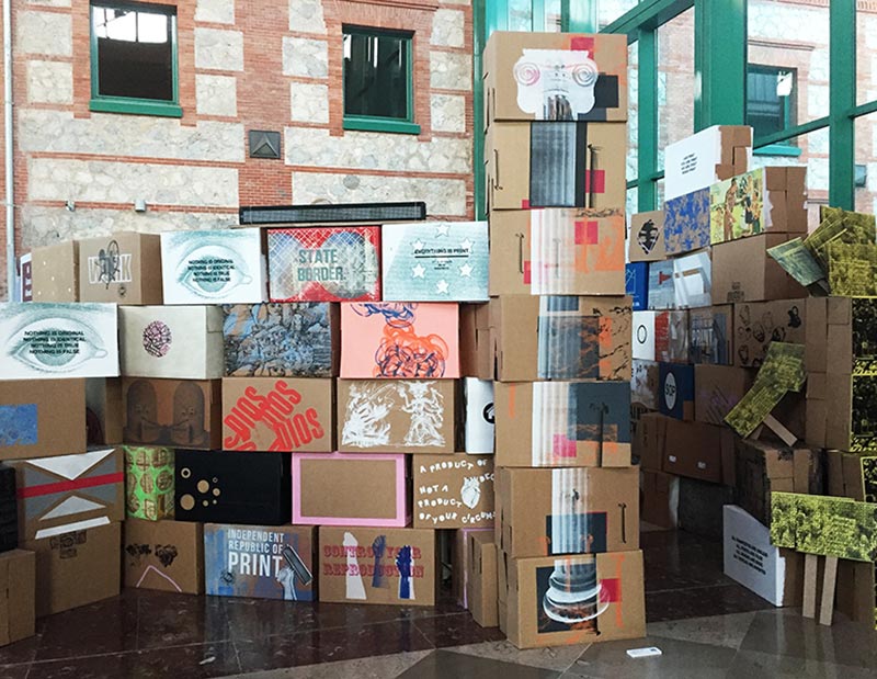 Between 1 and 9 September, a number of representatives of EINA are taking part in IMPACT 10, in the Hall of the recently opened Cantabria Central Library (Santander) in the State of Print installation, a group show, based on a group of British and Irish artists, that invites artists to offer a vision of the current state of graphic work in all its plurality and wealth while constituting a fictitious state, with all that this entails in relation to the various political discourses and considerations.