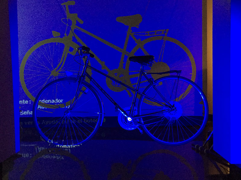 Barra de Ferro transforms into a bicycle night lane, exhibiting through an itinerary traced by fluorescents and projections, the works resulting of product design students of EINA, tutored by Francesc Crous.