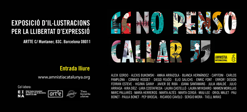 The exhibition "No penso callar", featuring original illustrations for freedom of speech, organized by Amnistia Internacional can now be visited until March 19th, 2016, at ARTTE, Muntaner 83, Barcelona.