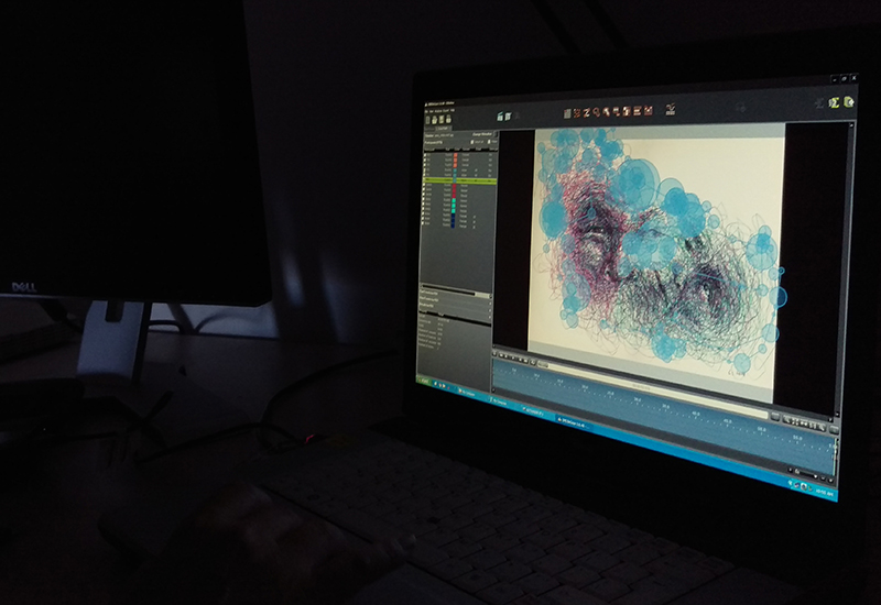 The activity was managed by Claudio Molina, teacher in the Degree in Design and the Postgraduate course in Creative Illustration and Visual Communication, which frames his doctoral thesis in the area of drawing and writing by studying gestuality and stroke. The thesis was led by the researchers Dr. Fernando Vilariño anad Dr. Dimosthenis Karatzas from UAB’s Computered Vision Centre (CVC). It involved the participation of Belén Peró, student of the last year of the Degree in Design, Marta del Viejo and Camila Reveco Sepúlveda, students of the Master’s in Research in Art and Design (MURAD) and Ariadna Fábregas, professor of Projects, Models and Prototypes in the Degree of Design.