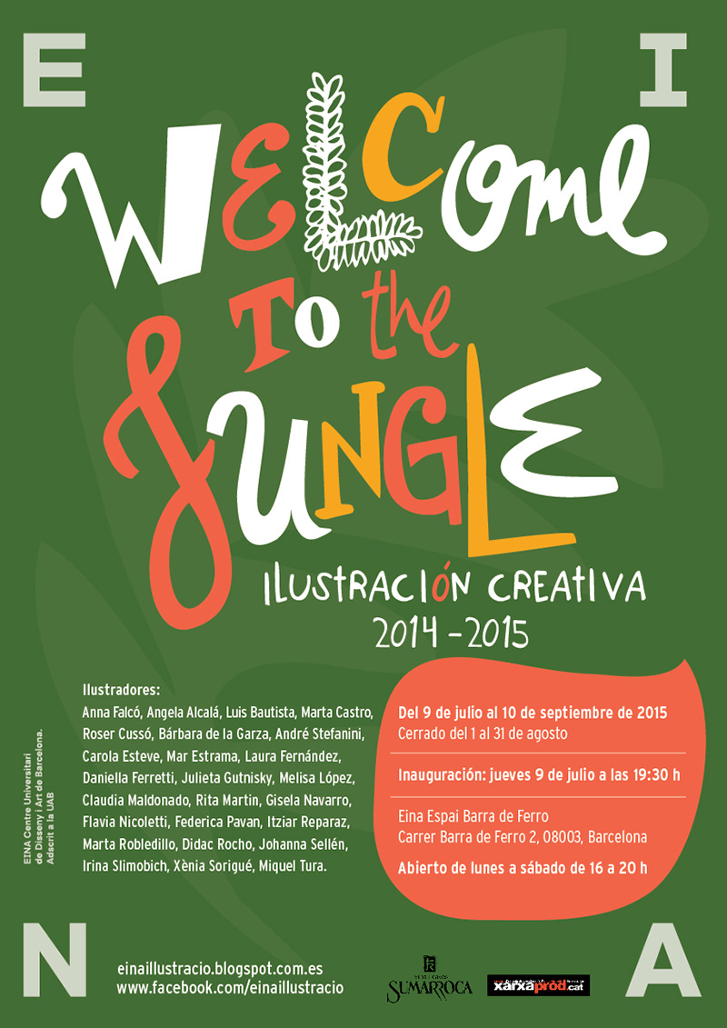This is the concept in which students of the postgraduate in Creative Illustration and Visual Communications Techniques EINA 2014-2015, coordinated by Philip Stanton have based their works for the exhibition "Welcome to the Jungle". Students from Spain, Italy, Sweden, Mexico, Brasil, Argentina, Bolivia and Chile, showcase a selection of the best pieces worked during the course and will also paint on-site during the opening, a collective mural that will be part of the exhibition.