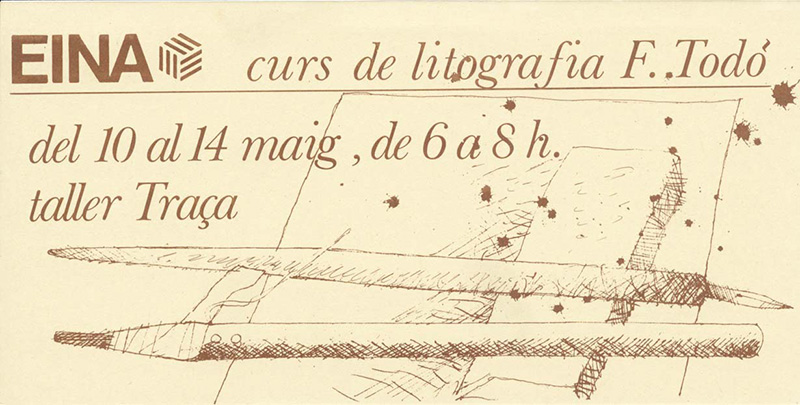 Apart from EINA, He had a close relationship with design. He worked as a graphic designer for Frontis, a printing office that he founded in 1956 with the poet Joaquim Horta and Josep Maria Castellet. Around 1960, he did a very special work claimed by the intellectuals of the time, from Oriol Bohigas to Cirici and that inspired poets like Jaime Gil de Biedma, Salvador Espriu, José Agustín Goytisolo or Pere Quart. From the influence of Paul Klee and Saul Steinberg, he made a schematic and lyrical figuration that surrounded the topic of the work machine, before returning to the both domestic and Arcadian reconstruction of the Mediterranean landscape.