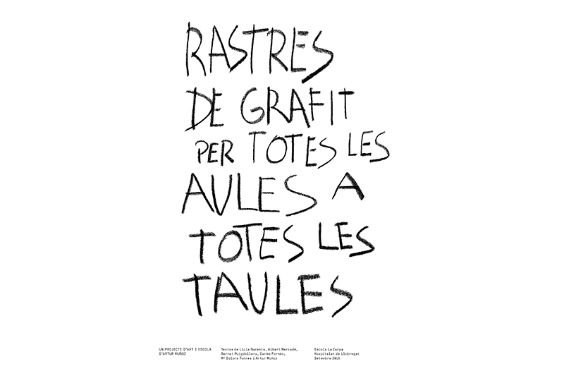 "Rastres de grafit per totes les aules a totes les taules, is an art and education project conducted by Artur Muñoz in the school La Carpa in the educational context of the Fundació Arranz-Bravo and with the cooperation of the City of L'Hospitalet de Llobregat.