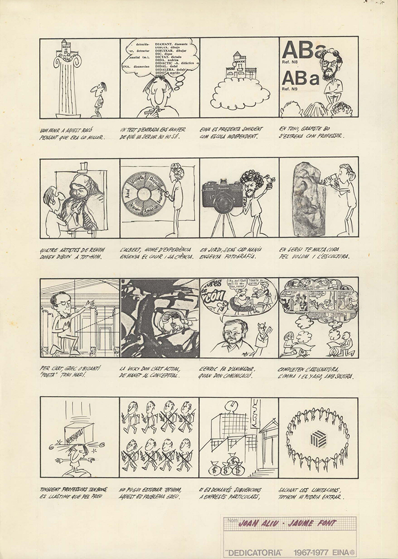 On Friday 22nd, we lost Joan Aliu, comic book writer and artist, and EINA student from the class of 1976. During his career, he was a member of the team working on the Botifarra! Magazine, and he also published solo works such as La història de Palafrugell, Notes de Josep Pla, Història de l'Onze de setembre de 1714, Història de l'Anna a Santa Coloma de Gramenet and Història de Barberà. Since 1989, he combined his career as an artist with running the Mediterrània bookshop in Palafrugell with his wife.