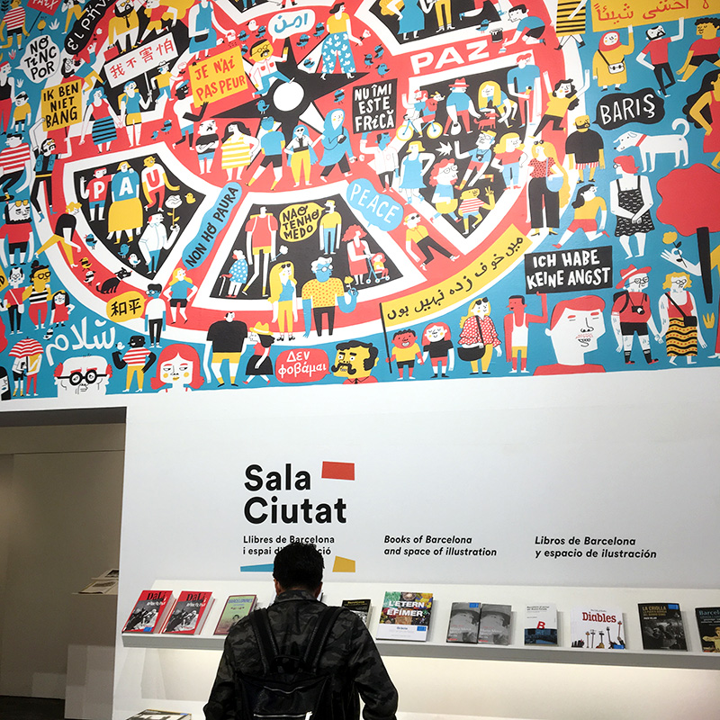 The Altell Il·lustrat, or illustrated mezzanine, is a space for large-format graphic presentations created by various illustrators, with Barcelona as the central theme. It changes twice a year, around Sant Jordi and La Mercè. The artists that illustrate the venue are chosen by a committee of experts.