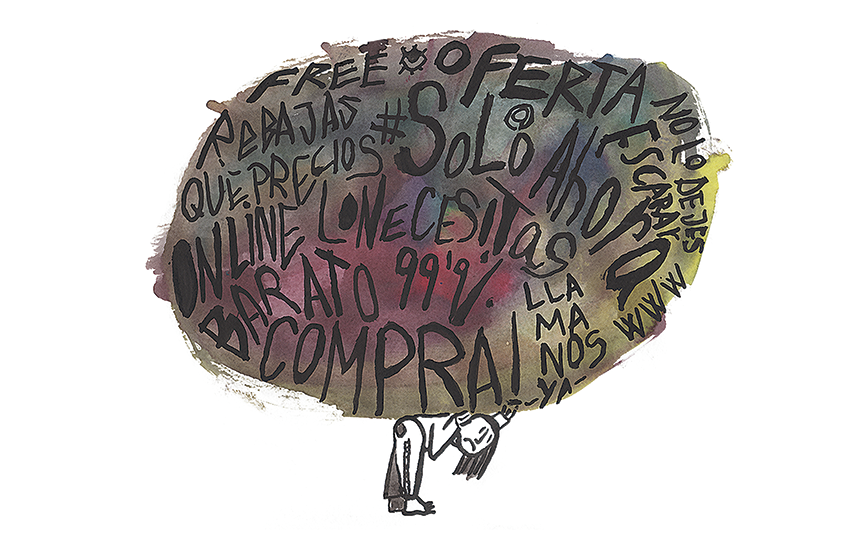 The illustration that Maria de Balanzó, an EINA student, submitted as an idea to the La Maleta de Portbou magazine to illustrate one of its articles, The future of work in the capitalism of platforms, has been published in issue 27 of the magazine.