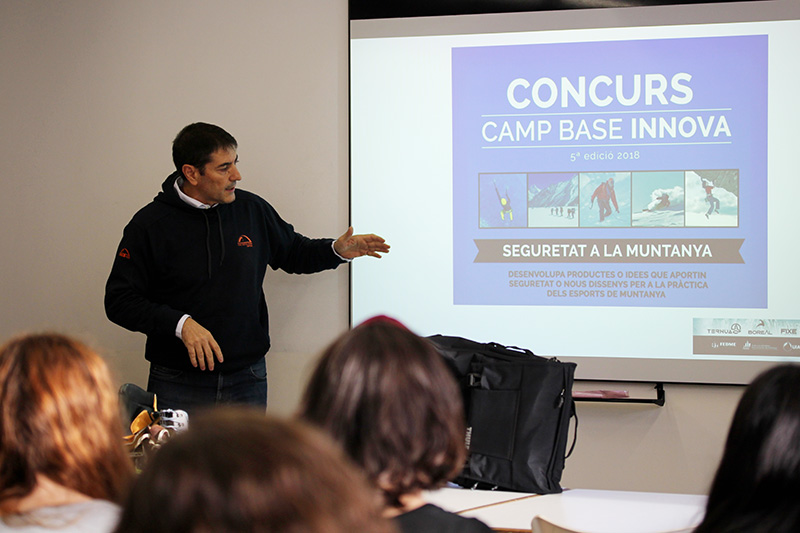 As part of the CAMP BASE INNOVA Competition, aimed at improving the safety of users in the mountains, on Friday 26 October, EINA students on the Bachelor’s Degree in Design subjects: Innovation Processes and Product Design, in the 4th year, and Modelling Objects and Ergonomics, Perception and Usability, in the 3rd year, took an immersion and research workshop in the context of the mountains by various experts in sports equipment, members of the rescue team of the GRAE Fire Servide, the FEEC (Federation of Excursionist Groups of Catalonia) and a number of mountain expert users. The session was led by Javier Nieto and Francesc Crous.