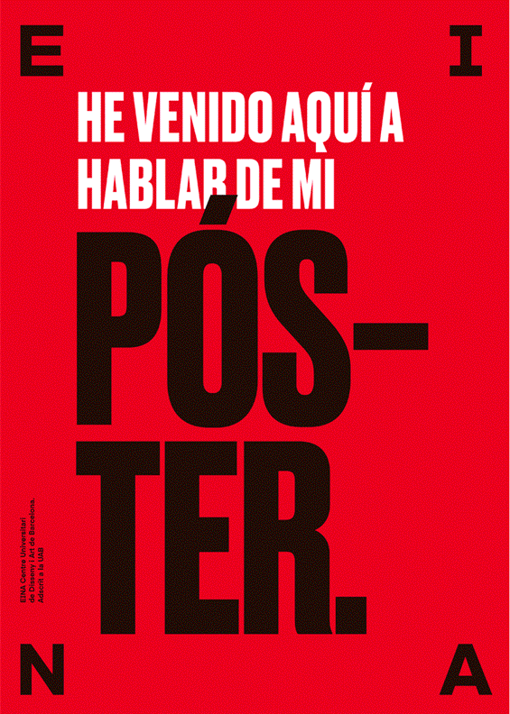 The exhibition “I’ve come here to talk on _" shows the results of the Master in Graphic Design of EINA, with alumni which are in fields such as advertising, journalism, product design, communications, art, architecture … featuring many ways of being, thinking, making; many disciplines that converge in graphic design. In the last two editions of the Masters new professionals have emerged, being capable of facing web and graphic design projects from a new perspective and taking advantage of the synergies of two disciplines at a time. Thus, the resulting exhibit, shows works of a period of training that has led students to acquire adaptability to current times, facing the transformation lived nowadays in the field of design.