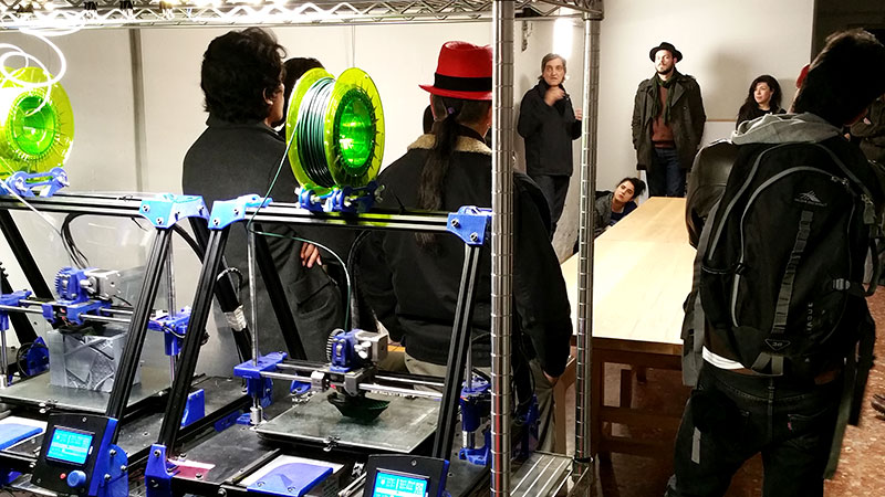 The second part of the visit was developed at Ex-Designer Bar, owned by Martí Guixé. There he explained his vision of the project with the experience and the use of the furniture and degustation tools designed in 3D printers.