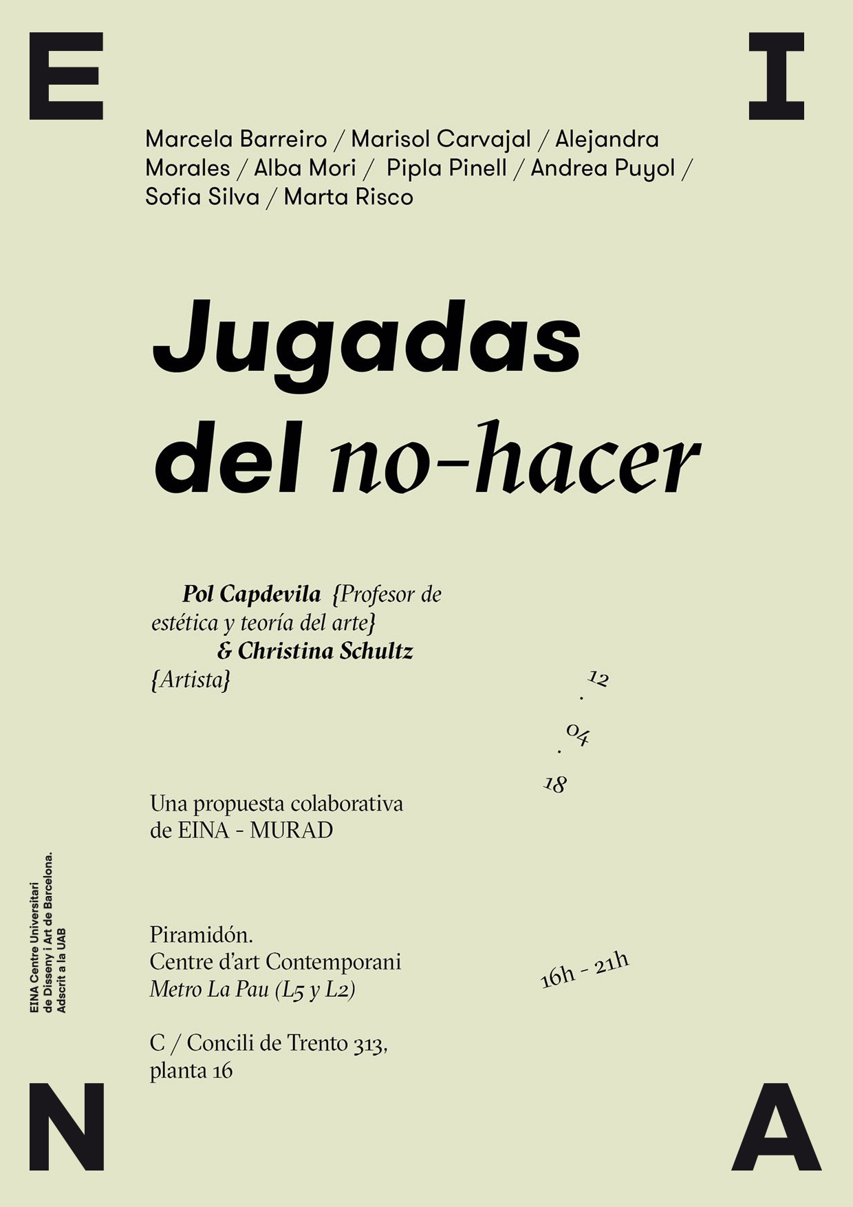 Teacher Pol Capdevila and artist Cristina Schultz have led this collaborative project, which they have titled “Jugadas del no-hacer” [Busy Doing Nothing], in reference to the ways of understanding non-action as a creative process. As Cristina Schultz explains: “Busy Doing Nothing is a response to the reflections on a society in permanent acceleration that, on the one hand, tries to fill the gaps in the time it has against the apparent inability to not do nothing, while on the other, it acts on the saturation of stimuli from advertising strategies and power discourses.”