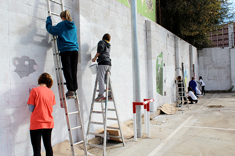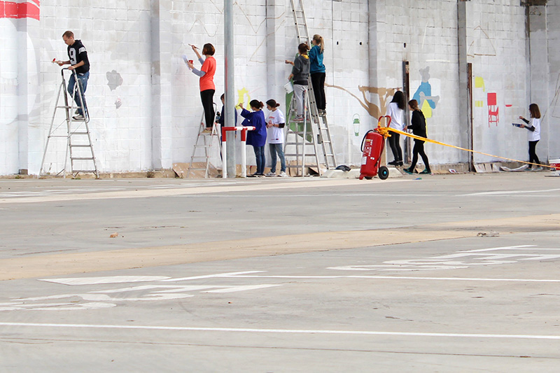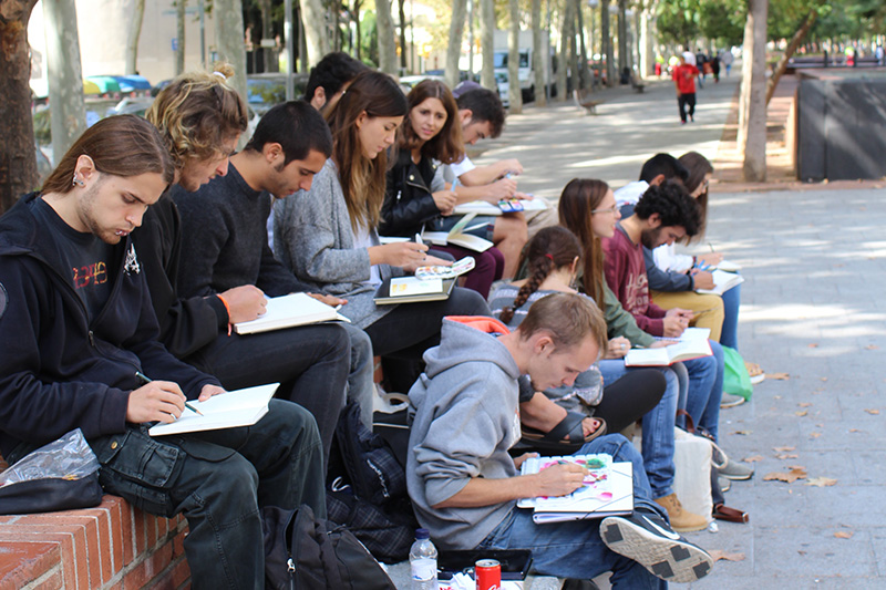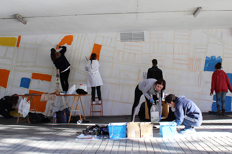 Students of Illustration Techniques of the year 2015-2016, taught by Enric Font, have developed two mural interventions in two different public spaces in Barcelona, managed by the Rebobinart Association. 28 students worked jointly to create and decide upon two proposals that took place in the following places:
