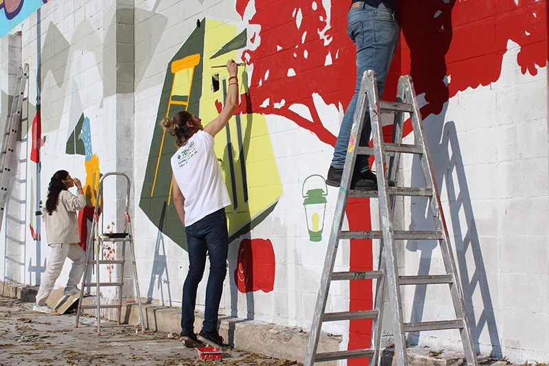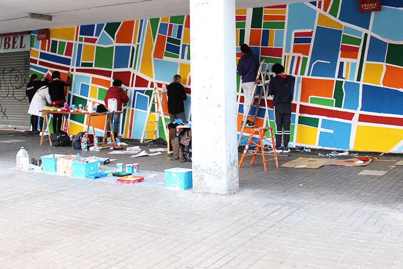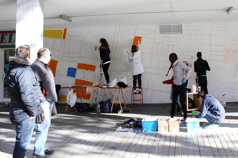 Contextualization in the public space meant to work with specific conditions: the work had a safe visibility and integrated into the everyday landscape of the neighbors. This forced them to consider what values they wanted to convey visually and the level of interaction that was intended to be achieved with pedestrians and the environment. Also, during the process of realization there was a relationship with people in the street, often in a very direct and open expression, in regard of their opinion.