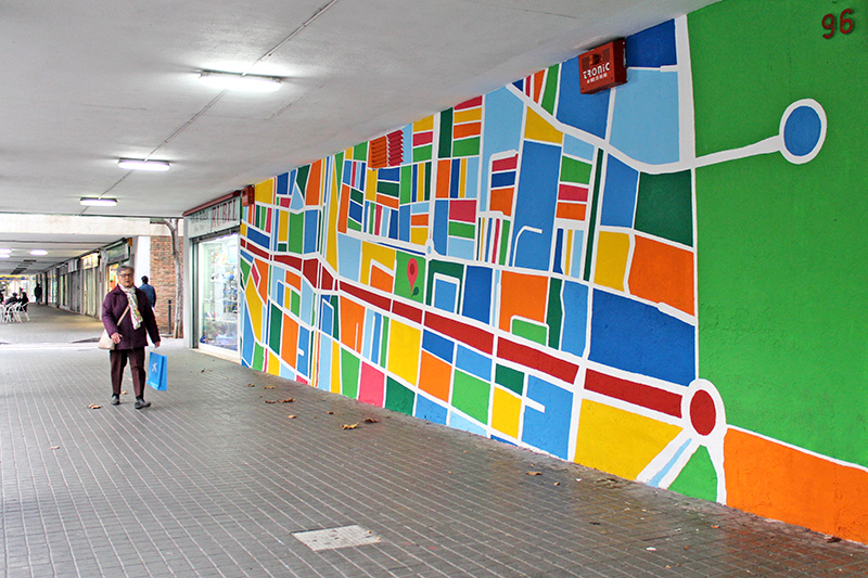 Private wall in public space (Rambla de Prim): Shiraz Arfa-Zaganeh Rebollo, Coralí Espuña Ribas, Sara García Navas, Alba Moreno Lecha, Judit Moya Illa, Francesc Muntada Martorell, Berta Peiro i De Quadras, Sandra Rubio Sentañes, Judit Sánchez Torner.