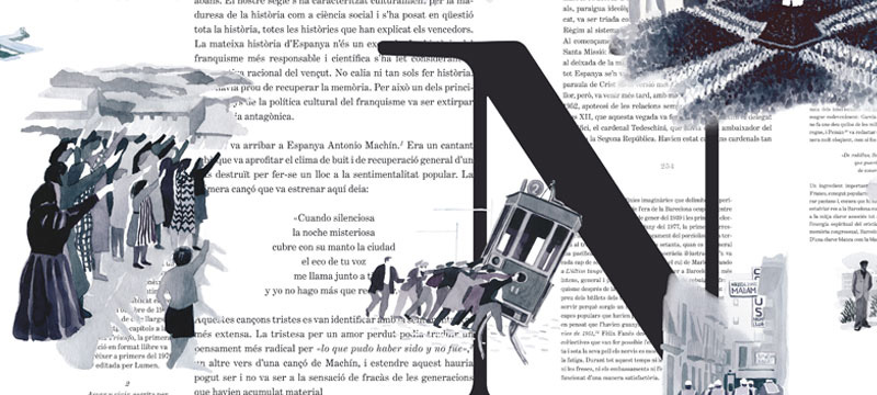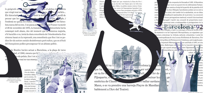 Pau Gasol Valls, former student on the Postgraduate Diploma in Creative Illustration and Visual Communication Techniques, and Carles Murillo, former EINA student, are the creators of the mural that can be seen at the Illustrated Mezzanine at Sala Ciutat in Barcelona. The graphic piece is inspired by the republication of the book Barcelones, by Manuel Vázquez Montalbán.
