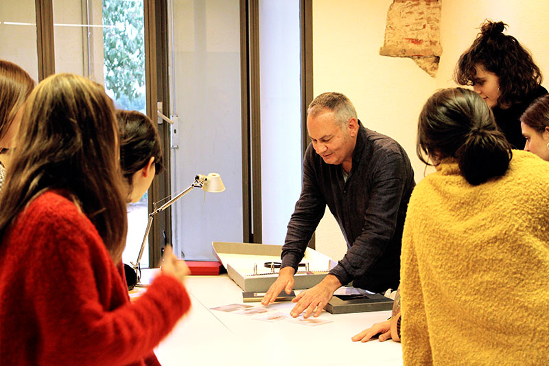 Photographer Martí Llorens has taken part in a session on the Postgraduate in Photography and Editorial Design, invited by Manel Esclusa, where he spoke of his work and about how technique is at the disposition of the photographer to reinforce conceptual aspects that enrich the image. Selecting the photographic reproduction process is an important choice as, for him, enjoying the journey is more important than the final destination.