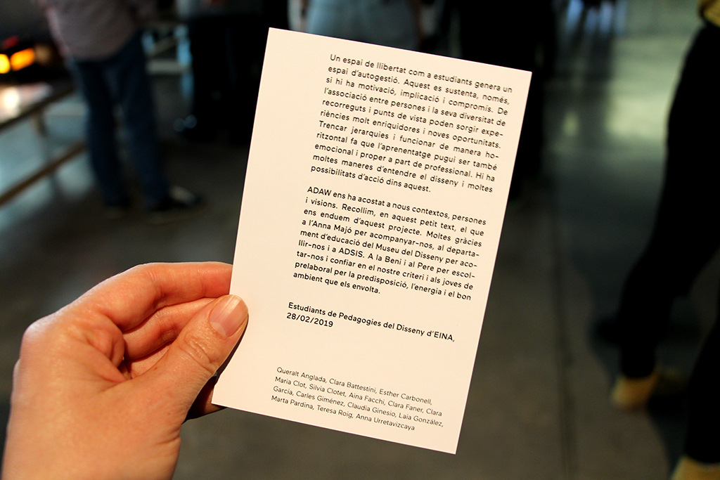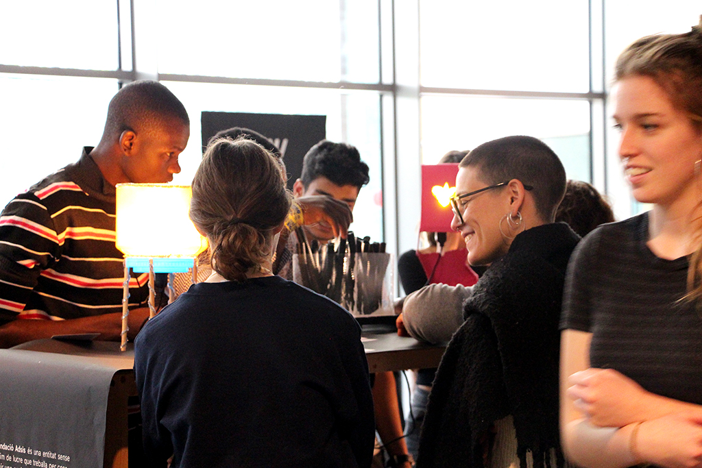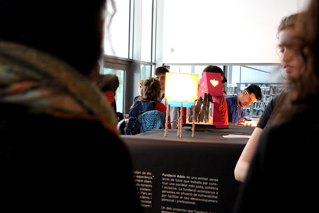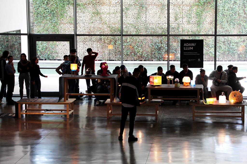 The presentation of the ADAW / LLUM project, at the Design Museum, featured the institutional presence of the Design Museum, with Pilar Vélez, and of the Adsis Foundation and EINA. Both the users of the Adsis Foundation and the Design Methodologies students explained how the collaboration project was undertaken and what the results were, both in the form of objects and, especially, of learning in all directions.