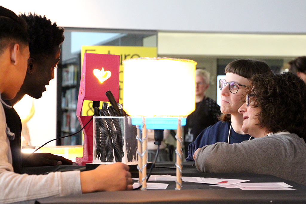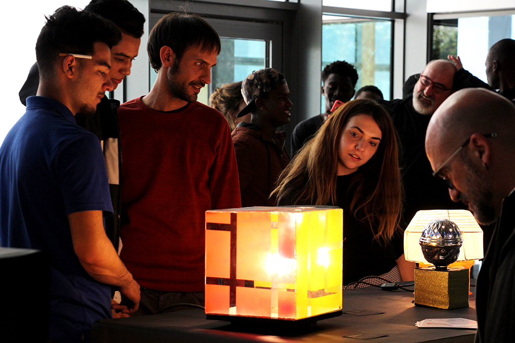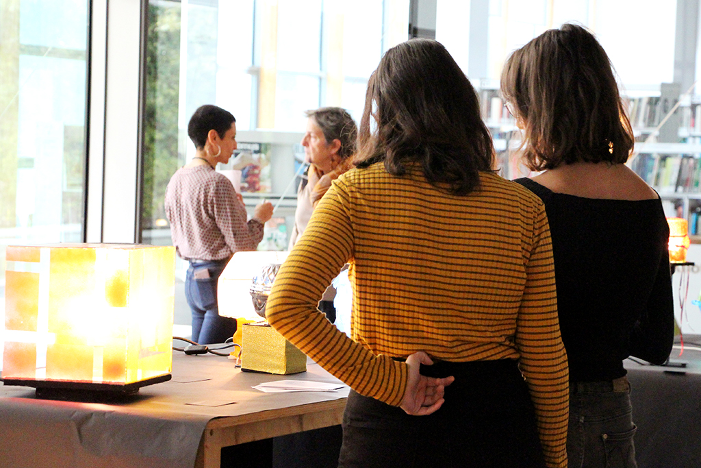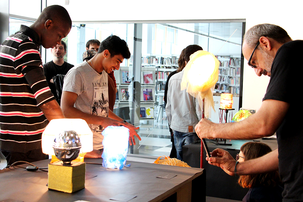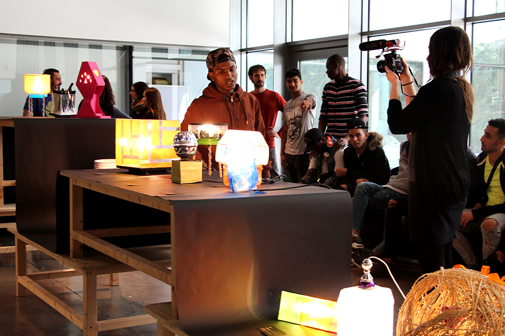 The presentation of the ADAW / LLUM project, at the Design Museum, featured the institutional presence of the Design Museum, with Pilar Vélez, and of the Adsis Foundation and EINA. Both the users of the Adsis Foundation and the Design Methodologies students explained how the collaboration project was undertaken and what the results were, both in the form of objects and, especially, of learning in all directions.