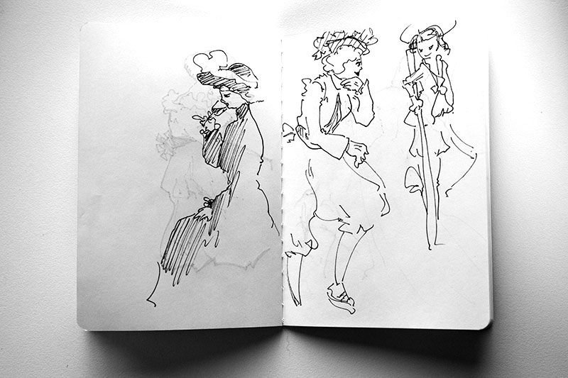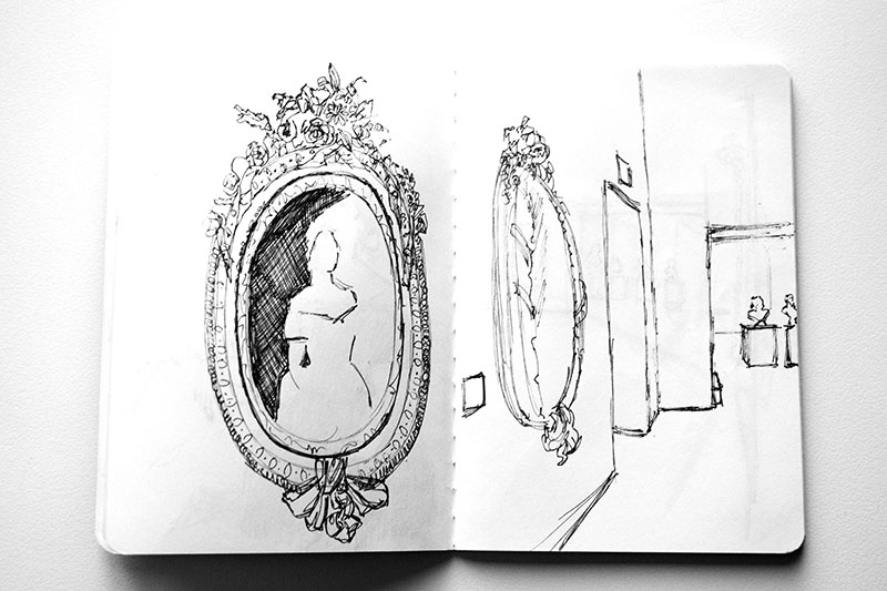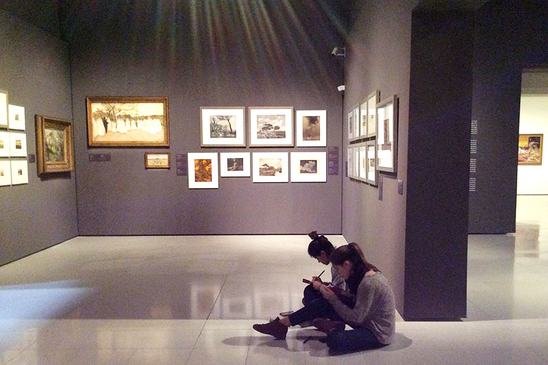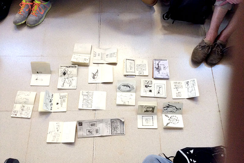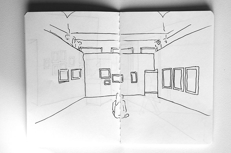 The subject Basic Drawing of students of the 1st year in the Degree in Design, following the collaboration between EINA and MNAC, chose the museum as the perfect scenario for the exploration of the possibilities of sketching. The site proved relevant, given the recent reopening of the collection of Modern Art and the richness and variety of the artistic materials exhibited (paintings, sculptures, drawings, photographies, posters, films, models, etc.). The booklets used, chosen for this project for their size and lightness, allowed to work on-site without the need for a large infrastructure, taking notes of both the exhibition’s space and the more exhaustive elements of detail. The use of a marker supplemented the work on this support, allowing direct and agile results, that will now be exhibited at EINA’s lobby during the week of May 24th; contextualizing Mr. Juan José Lahuerta’s participation in the next EINA a les 8 cultural program, scheduled for next Thursday May 28th, at 8pm.