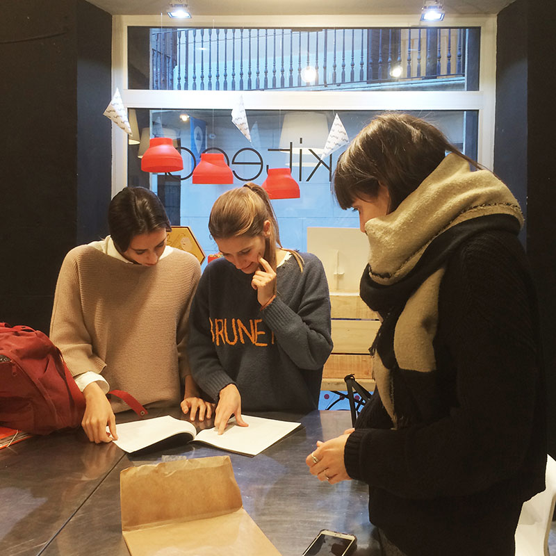 Anna Dalmases, Queralt Guinart and Gina Sala, students on the Interior Design of Commercial Spaces subject in the 4th year of the Bachelor's Degree in Design, with Anna Bach, are taking part with their project “Something’s Cooking Here”, in the BCD Barcelona Centre de Disseny initiative, with the support of Barcelona City Council and the collaboration of Eix Sarrià, to revitalise trade on Carrer Major de Sarrià, as part of the Christmas campaign.