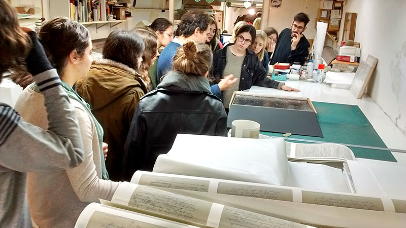Visits carried out within the subjects of Graphic Creation Workshop and Visual Arts Workshop prepare and inspire students so that they can develop artist books and singular publications to be presented in the PRINTed#3 fair, which will be held the 22nd of April at EINA Espai Barra de Ferro.