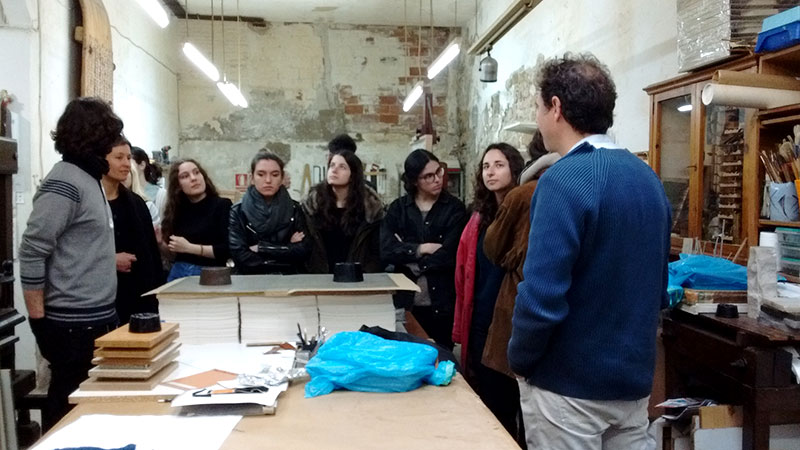 Students of the subject Graphic Creation Workshop, in the third year of the Degree in Design, given by Jo Milne, have visited the workshop of the graphic work publisher Editions Invisible Ink. In the workshop, students were able to see the shared spaces in different activities related with the arts of the book: the engraving, artistic bookbinding, giclée printing, and graphic design.