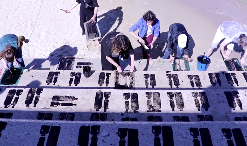 Workshop SQUID Guerrilla installation with David Faithfull, which will take place on PRINT.ed #5 consisted of the creation of an ephemeral stamp on Bogatell beach (Barcelona) using natural materials to raise awareness of our use of plastics and their impact on the environment.