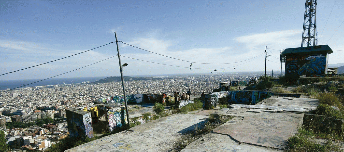 The summit of the Turó de la Rovira is the highest point on the Barcelona plain. It is both a marginalised and a privileged space, currently not developed and in a wild state. Owing to its characteristics, the space was used in the twentieth century in extreme and dramatic situations – for example, the anti-air defence of Barcelona during the civil war and the phenomenon of shanty towns during the post-war period – of which some evidence still remains.