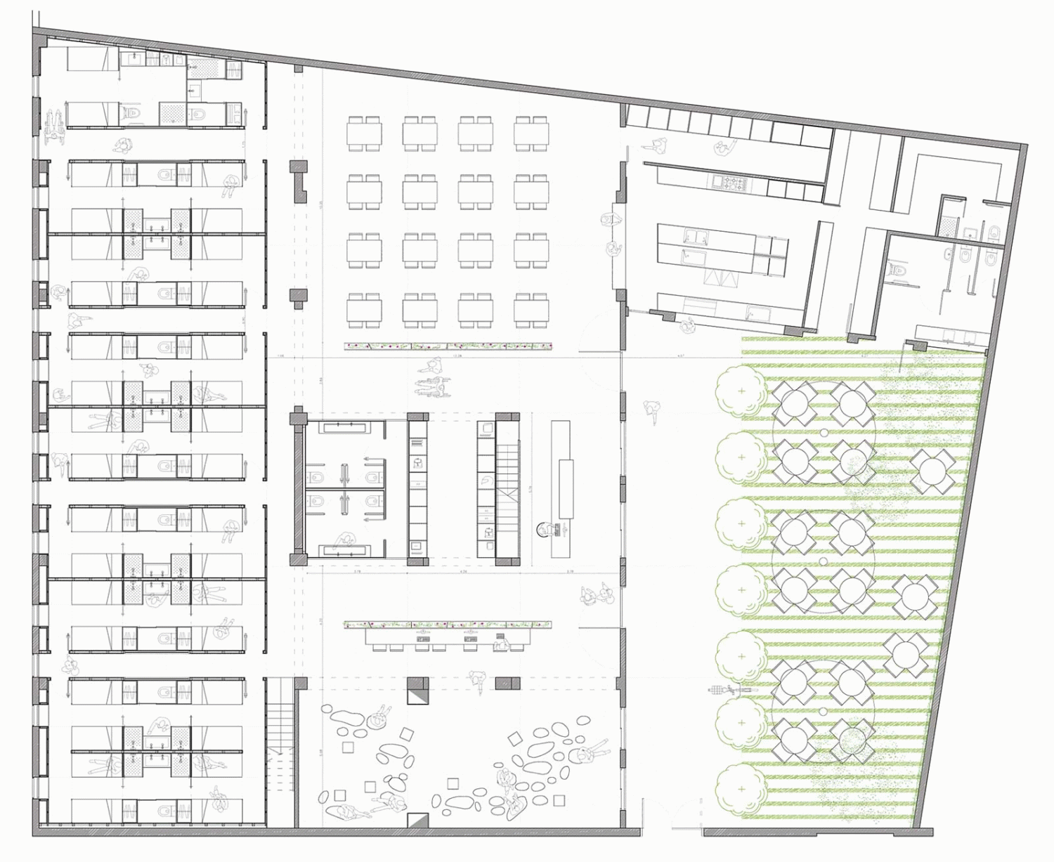 The project consists of creating a youth hostel which is currently a greenhouse and garden centre in the Sants district. The aim is to project a small city inside the present building and maintain the essence of the greenhouse using different concepts and elements that will be preserved and fostered in the youth hostel, such as the name: Greenhouse.