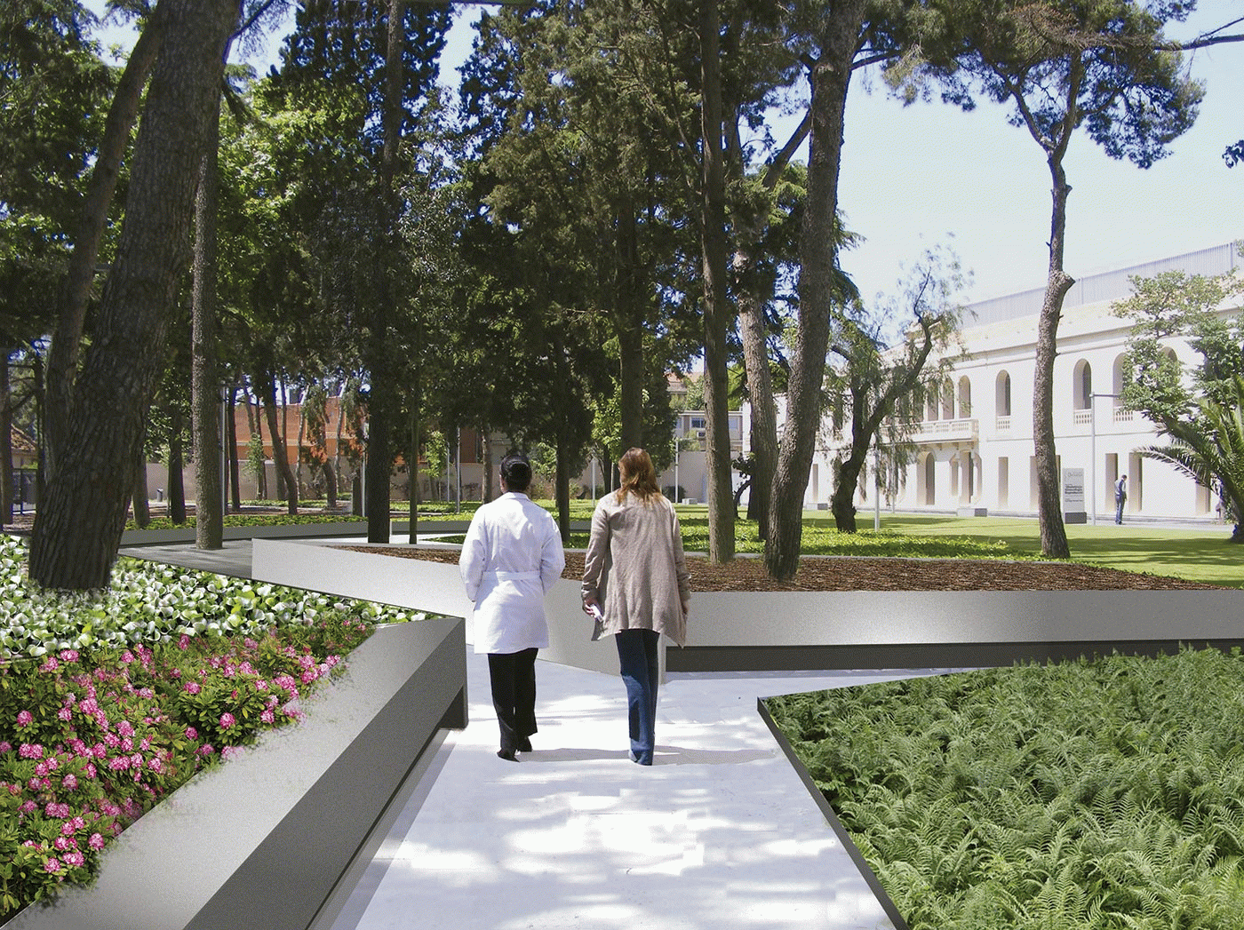 On the basis of a detailed programme, the aim is to act both on the interior and on the landscaped surroundings and make the historic value of the building and its new uses compatible while enhancing the natural attractions of the site, at all times considering the therapeutic aims of the complex.