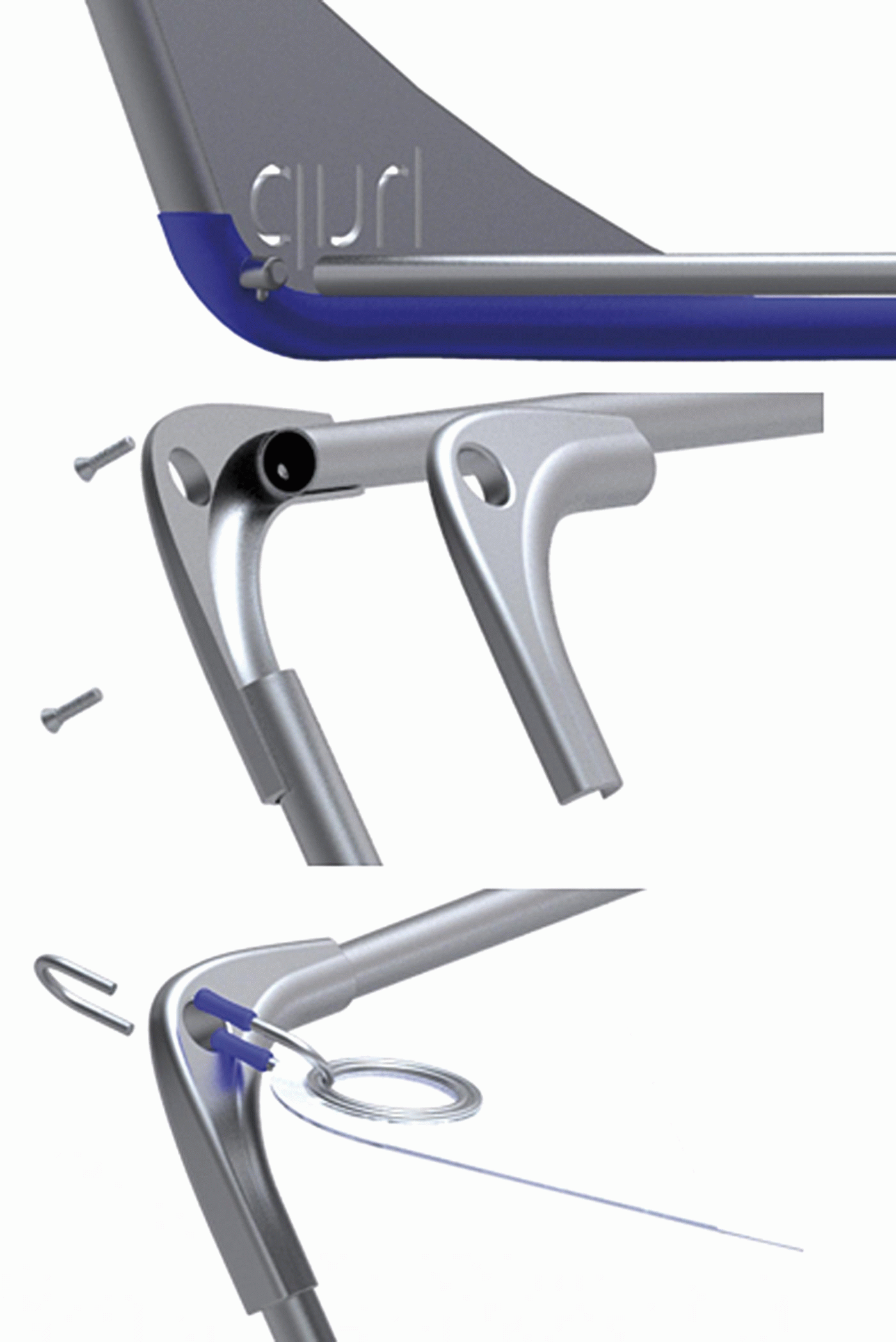 Detachable and easy to transport, it is lightweight and easy to assemble, and because it has two different coloured pieces of cloth, the user can turn it round and highlight the side they like the most. The snap hooks mean that it can be tightened quite easily, thanks to an innovative anchoring design based on nautical equipment.
