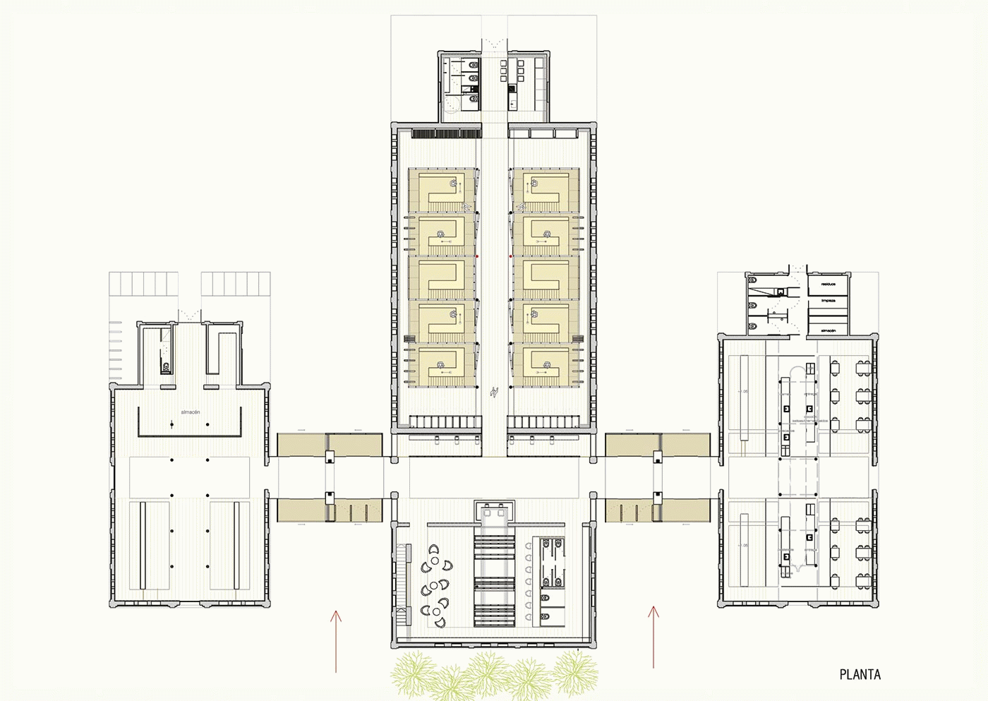 The aim of the project is to link the three existing buildings, making the whole act as a unit, to make permeable the use of the spaces and facilitate routes, arrange and differentiate accesses and private and public spaces, respect the existing architecture. All this it is hoped will establish a more direct relationship with visitors and users.