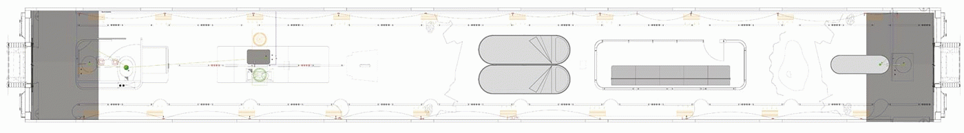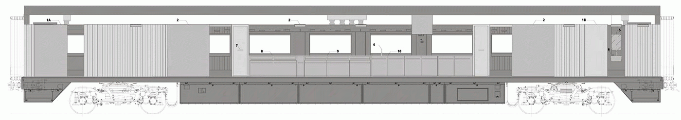 As the motif of the project, the railway carriage follows the path of life in a constant change of perspectives, views, colours and textures. It makes us return to the nomadic essence that we gave up to immerse ourselves in today’s pathetic sedentariness. We have lost all curiosity for slow travel: everything is done in a hurry, without contemplating the journey or meditating on the experience.