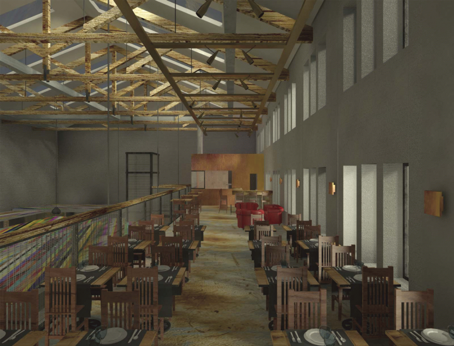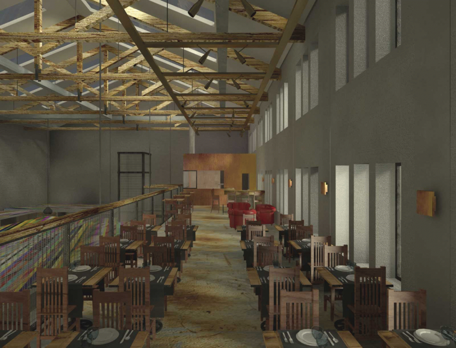 Another aspect to highlight is the treatment given to the roof of the market stalls as this is a delicate element as it is in the front line of view from the restaurant and is usually very dirty. To prevent the roof from getting dirty, an easy cleaning system has been created and it has been aged.