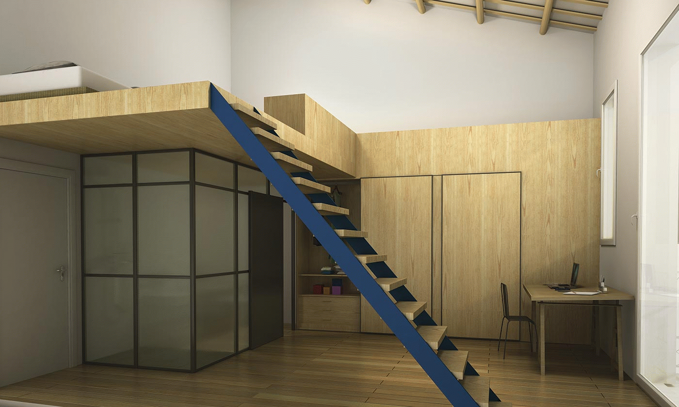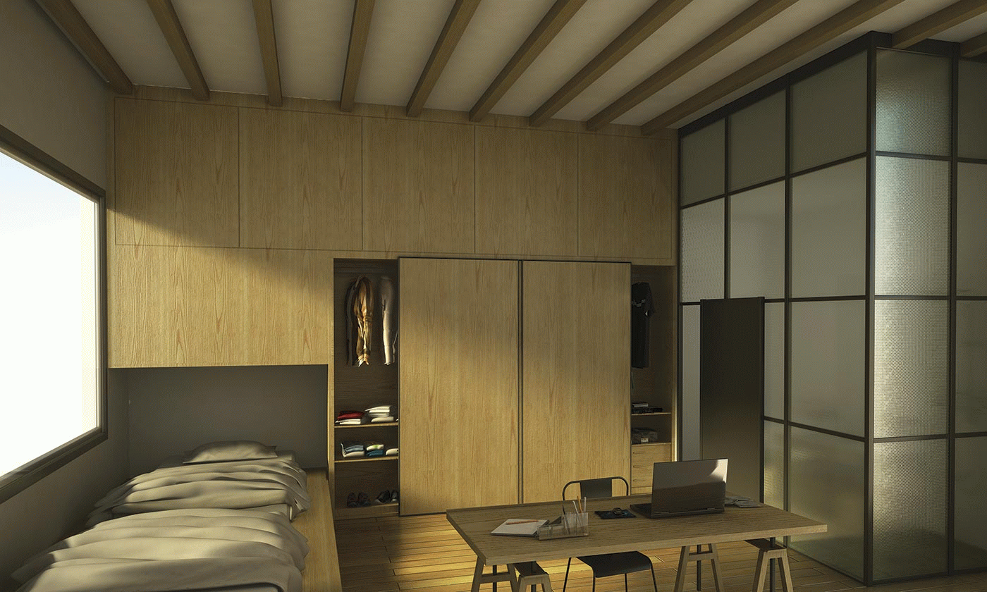 This project comprises endless opportunities for students who are interested in becoming independent but in an unconventional way. This way, Studio 7 seeks to get away from the typical image of the student flat to offer instead a space where it is possible to combine living and studying.