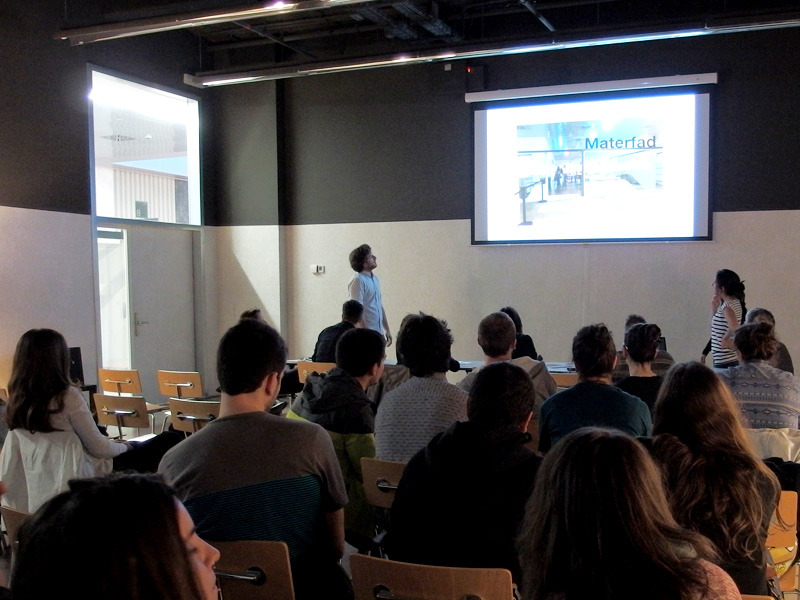 Dentro de la asignatura Propiedades y Usos de Nuevos Materiales para el Diseño de 3º curso de Grado, en la parte específica de Diseño Gráfico y Creación Visual, impartida por Anna Llàcer y Lluc Massaguer, el pasado 24 de abril se presentó en Disseny Hub Barcelona, sus propuestas para la aplicación gráfica en el nuevo espacio MaterFAD.