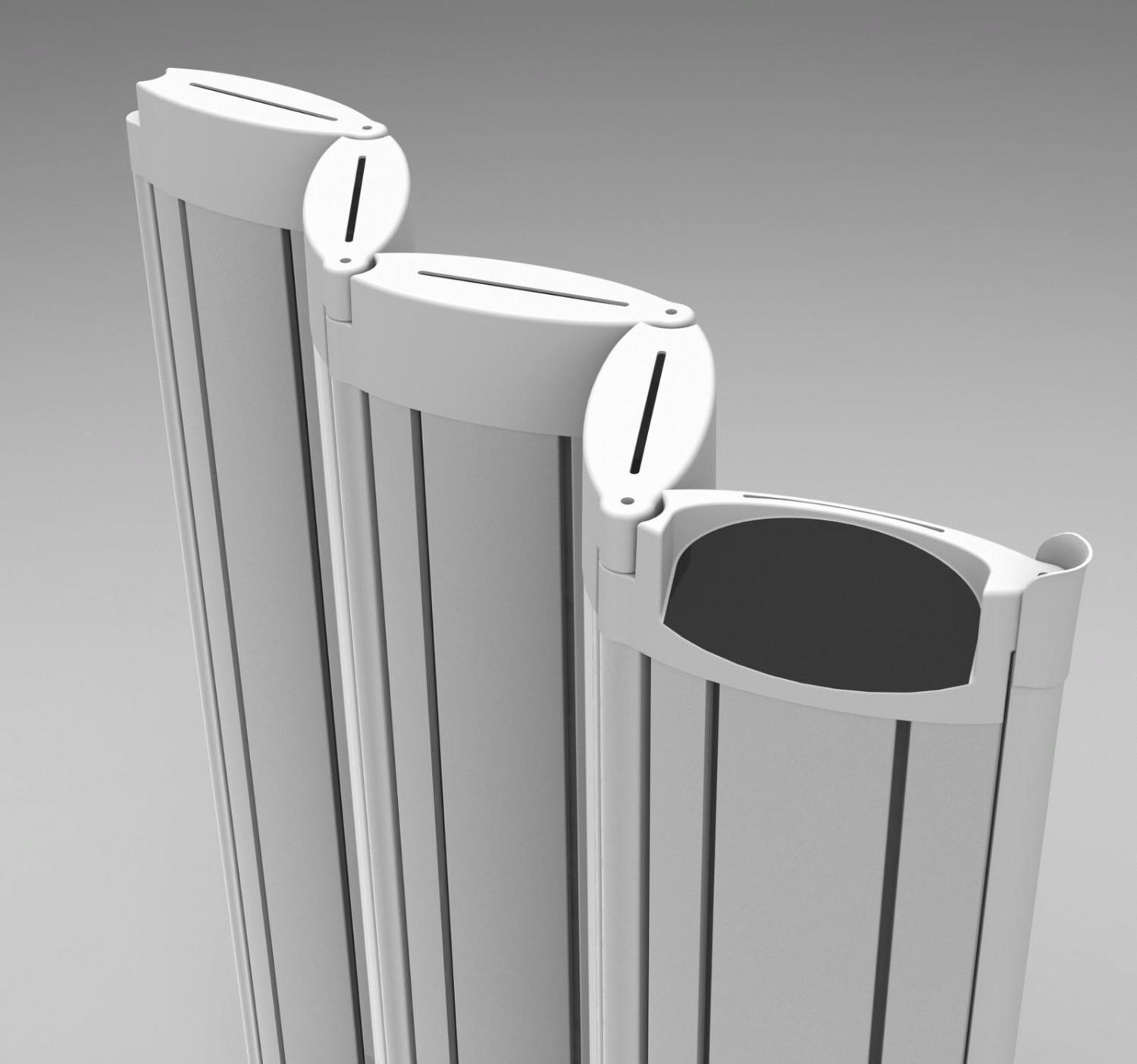 Artikula es un radiador de fluidos articulable y programable formado por distintas piezas modulares que se unen entre sí y permiten un movimiento de giro. Gracias a este movimiento articulado, el radiador se puede adaptar a ciertas partes del espacio doméstico como una columna, una esquina o el pie de una mesa. De ese modo, logramos integrar el radiador en el espacio de manera que no termine siendo un objeto molesto.