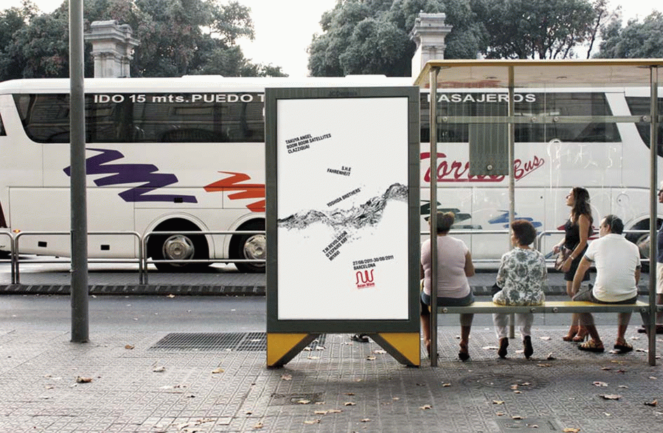 Se trata, pues, de elaborar la comunicación gráfica de un acontecimiento que evoque las raíces orientales, pero que va dirigido a un público occidental, y hacerlo sin caer en tópicos y encontrando un equilibrio entre la diversidad de estilos representados y el tipo de público asistente. El lenguaje visual utiliza dos recursos que se pueden combinar. Por una parte, imágenes de olas en blanco y negro que destacan sobre un fondo blanco y transmiten movimiento, juventud y variedad, utilizadas para captar la atención del público; y por otra, una línea creada a partir de la expansión del símbolo, utilizada en la señalización y el merchandising.