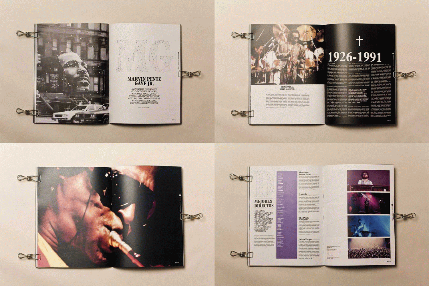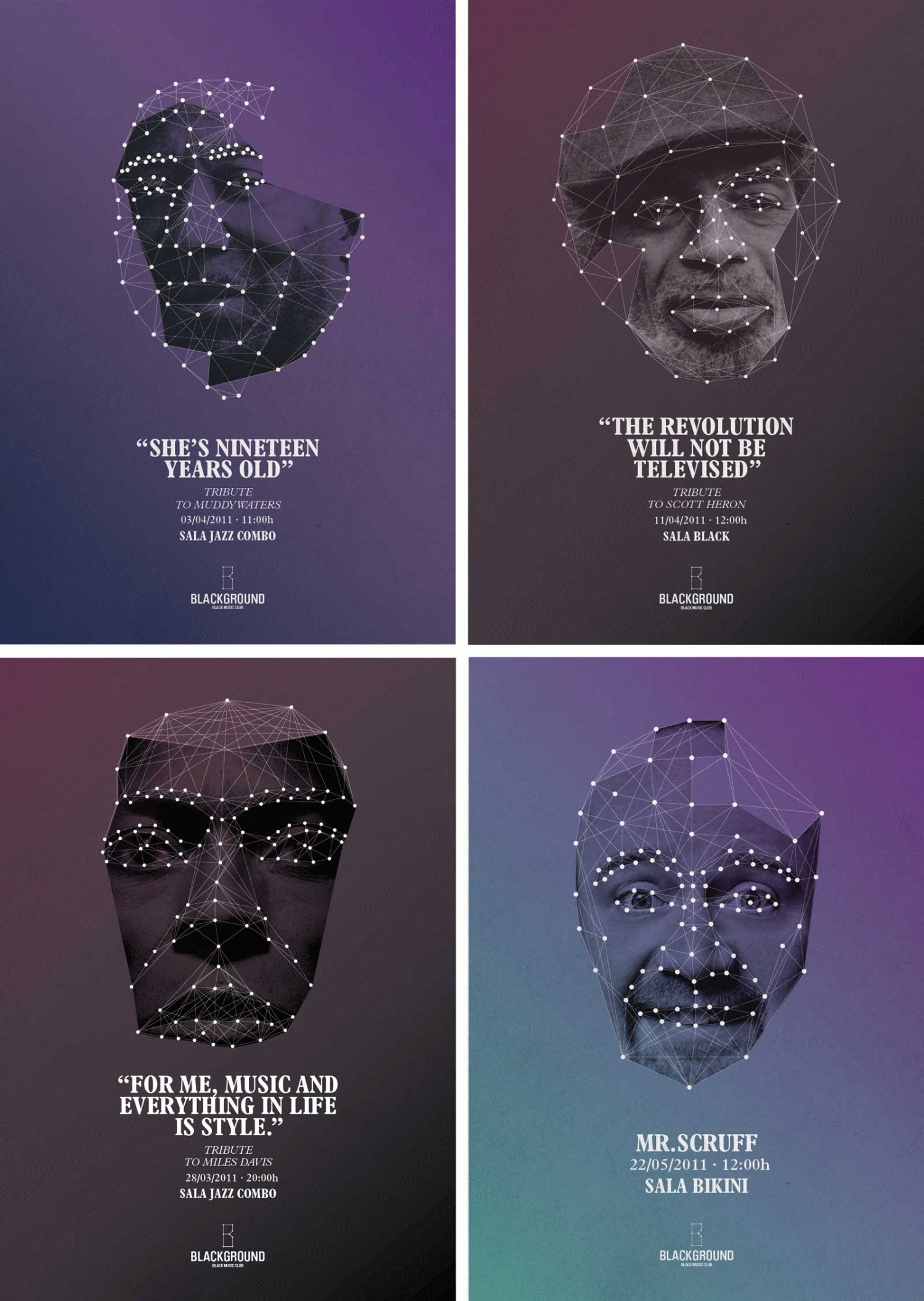 El propósito principal de mi proyecto es el de llegar a relacionar todas las gráficas relacionadas con la música negra –que son variadas y diferentes entre ellas– y establecer así un nuevo código gráfico que las englobe a todas pero que permita distinguir la personalidad de cada una de ellas. El proyecto incluye aplicaciones tales como: formularios para darse a conocer, pack de bienvenida, carteles, revista, página web y una aplicación de iPhone para facilitar la información al socio.