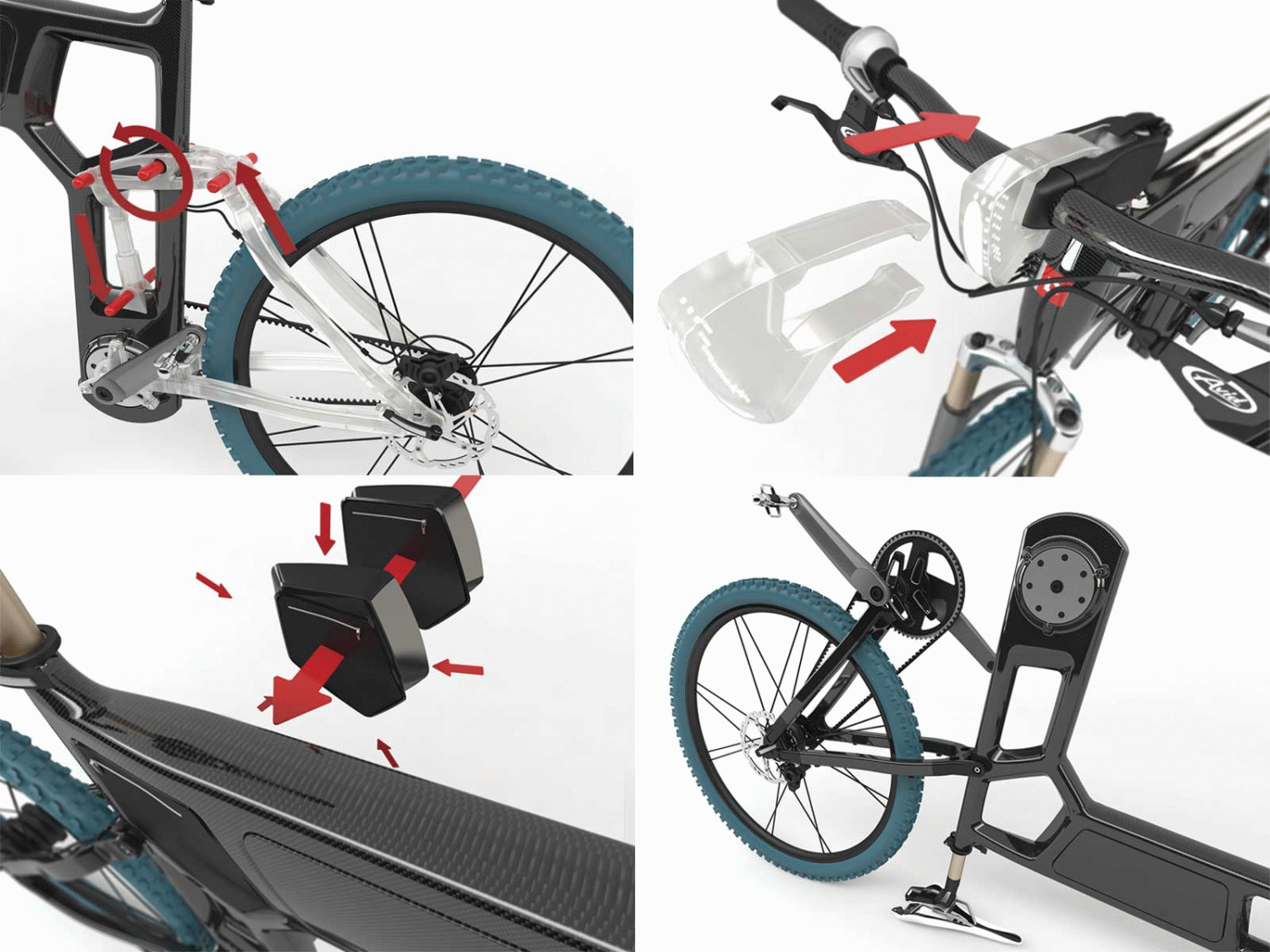 El resultado es fruto del análisis, de la crítica y del diseño de todos los componentes. Se han hecho mejoras innovadoras en todos los ámbitos: la producción (un mismo molde para el modelo de doble suspensión y el rígido), la seguridad (batería oculta con anclaje de seis puntos, llantas reflectantes de 10 a 80 grados de inclinación), el almacenamiento (potencia plegable para reducir en la mitad el ancho de la bicicleta), el uso (bolsillo extraíble, iluminación rígida, cuadro en L para poder llevar la bici al hombro), la reparación (desmontaje fácil), etc.