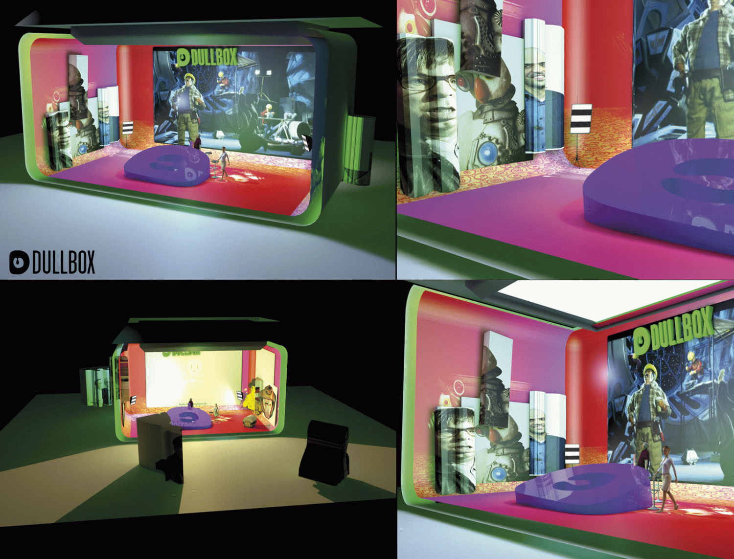 El plató de televisión, como si de una caja gigantesca se tratara, lleva al espectador a ser manipulado como un títere y maniobrado por pantallas y personajes gigantescos. Una sesión de terapia y estímulos audiovisuales que impactan en los ojos, experimentando y transformando la experiencia del satírico espectador en el universo titiritero de Dullbox.