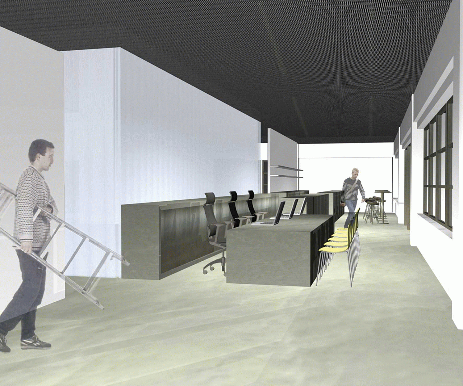 En este edificio, la antigua fábrica Philips, el interiorismo tiene presentes en todo momento los objetivos del centro: aportar las herramientas necesarias para realizar cualquier proyecto creativo y promocionar a los jóvenes artistas y diseñadores. Y hacerlo siempre con un carácter abierto, de interrelación y comunicación.