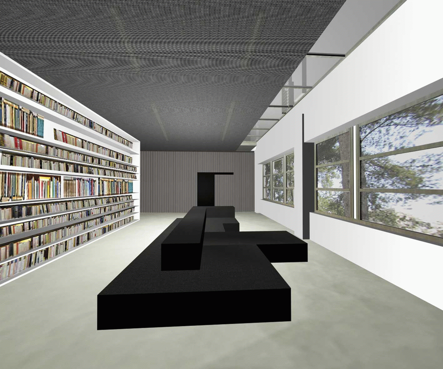 Ese núcleo, dotado de un fuerte carácter gracias al material empleado en su construcción y a su presencia central con dos alturas, es el resultado de cuanto lo rodea. El resultado del trabajo que se realiza en las instalaciones que hay a su alrededor se refleja en esta sala de exposiciones, protagonista del proyecto.