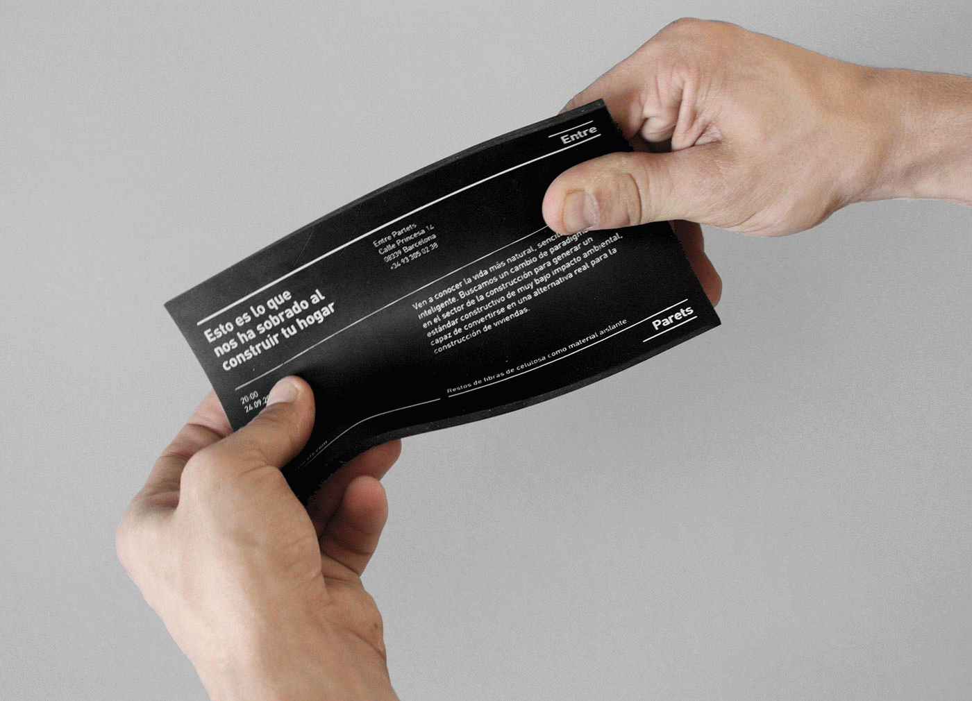 El proyecto Entre Paredes es la creación de una identidad para una asociación formada por profesionales de diferentes sectores de la edificación que velan por un cambio de paradigma en el sector de la construcción. Esta asociación pretende generar un estándar constructivo de muy bajo impacto ambiental capaz de convertirse en una alternativa real para la construcción de viviendas prefabricadas.